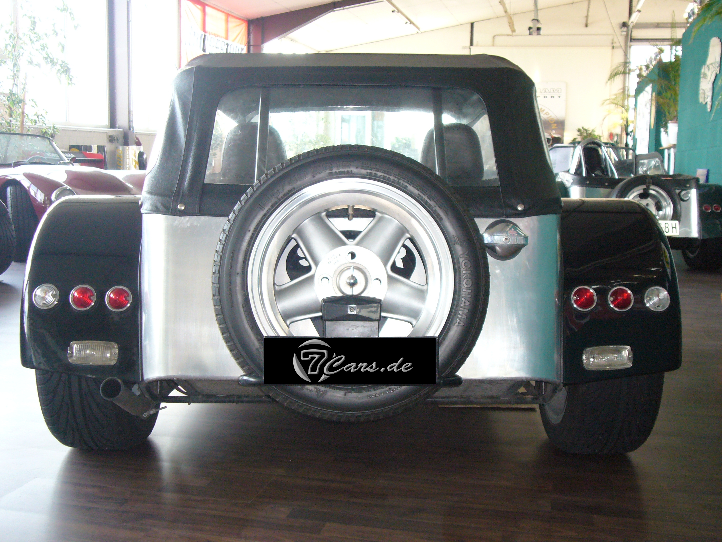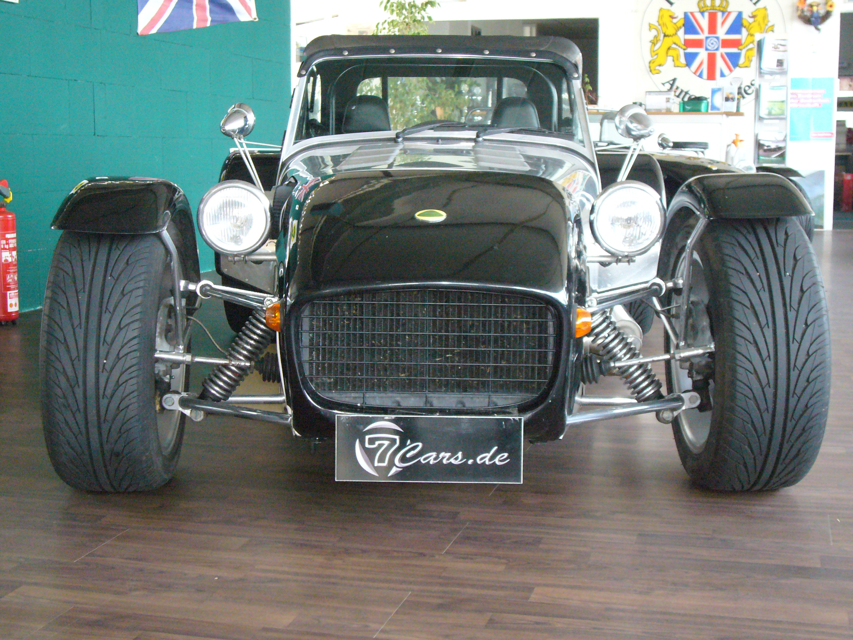 Extras / Zubehör: - Dach und Türen neueste Ausführung - Revolution-Felgen 15" mit neuer Bereifung - verchromte Vorderachse - Revolution-Reserverad - kleinere H4-Frontscheinwerfer - runde Rückleuchten - kleine Blinker auf Frontnase - 4-in-1-Auspuffanlage - Weber-Doppelvergaser mit TÜV-Eintragung - 3-Bein-Formel-Außenspiegel - heizbare Frontscheibe - Lotus-Emblem emailliert - Teakholz-Armaturenbrett - S-Type-Ledersitze - 12V-Navi-Anschluß Motor überholt bei 60.000 km. Im Kaufpreis inbegriffen ist unser Jubiläumspaket 30 Jahre 7Cars |