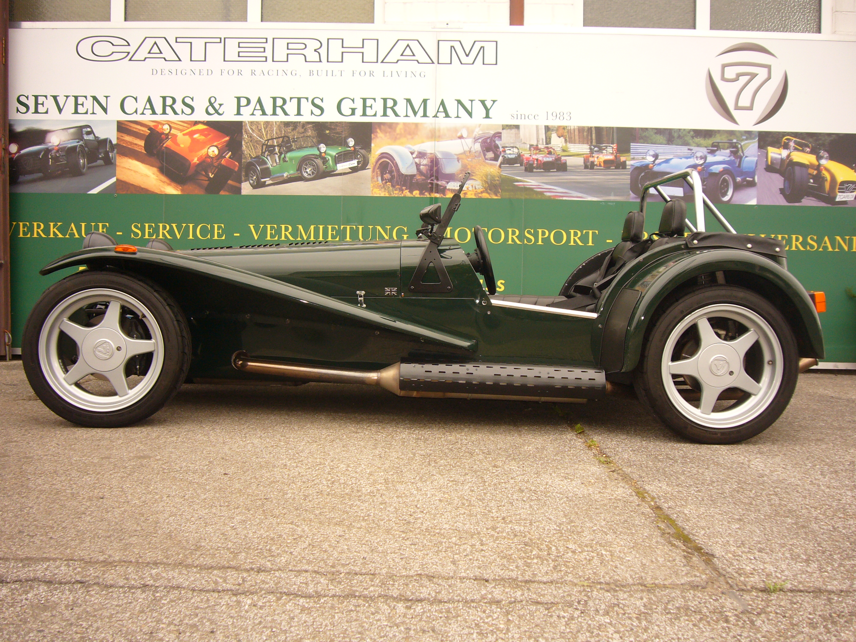 Extras / Zubehör: - S-Type Ledersitze - Luke - 4 Punkt Gurte - Wetter equipment inkl. Heizung - Tonneau-Cover - Black Pack mit kleinen Scheinwerfern - Großer Caterham Aluminium Rennkühler - 7Grill mit Steinschlagschutz - Kühlschläuche Silikon (original Caterham) - Armaturenbrett und Mitteltunnel in Alcantara schwarz. - AP-Rennbremsanlage innenbelüftet - neues SPC- rocket Helical-Getriebe mit geänderter Übersetzung - Tran-X Differenzialsperre - neue SPA Sportspiegel - Spiegelbefestigung in Kombination mit Türscharnier - Verchromter Überrollbügel Sehr gepflegter Originalzustand mit lückenloser Historie Im Kaufpreis inbegriffen ist unser Jubiläumspaket 30 Jahre 7Cars |