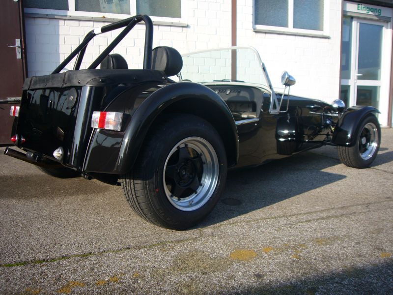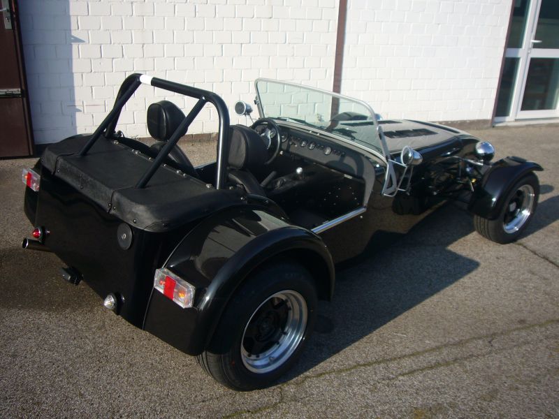 Caterham R300 SVExtras: 6 - Gang Getriebe AP- Rennbremsanlage Nitron - Fahrwerk Sperrdifferential Ledersitze und Ledermitteltunnel Bereifung: 13 Zoll mit 185 / 205/60/13 - Änderung auf Wunsch möglich Der Caterham ist zur Zeit zerlegt, dazu aus Qualitätsgründen auch die Vorderachse demontiert. Der R 300 wird in schwarz lackiert. Die Fotos sollen zeigen, dass der Neuaufbau nicht aufgrund eines Unfallschadens geschieht. Im Verlauf des Aufbaus werden neue Kotflügel und eine neue Frontnase mit mit Luftöffnung ( CSR ) ein neues Dach und Türen verwendet. Unsere Dreibein Formel Außenspiegel sowie runde Rückleuchten und kleine H4 Frontscheinwerfer werden montiert. Alle Druckknöpfe, Haubenhalter sowie Embleme werden ersetzt. Nach Fertigstellung werden Sie diesen R300 von einem Neufahrzeug nicht unterscheiden können. Weitere Auskünfte über die Laufleistung und über eine Rahmenreparatur an der Unterseite des Chassis erteilt gern der Vorbesitzer Andreas Seydell ( Caterham Car Club Deutschland ) Update: Das Fahrzeug ist neu aufgebaut und kann gerne bei uns besichtigt werden. |